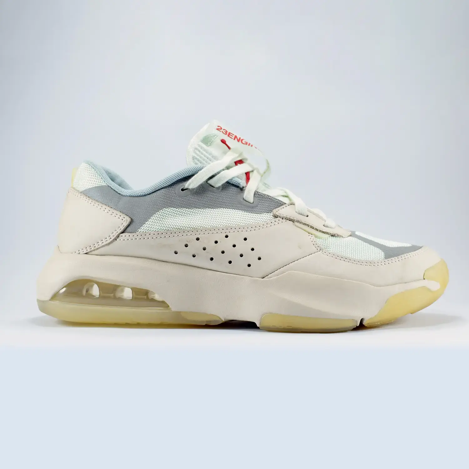 - The Nike Jordan Air 200E sneaker is featured in the ‘Light Orewood Brown Barely Green’ colorway